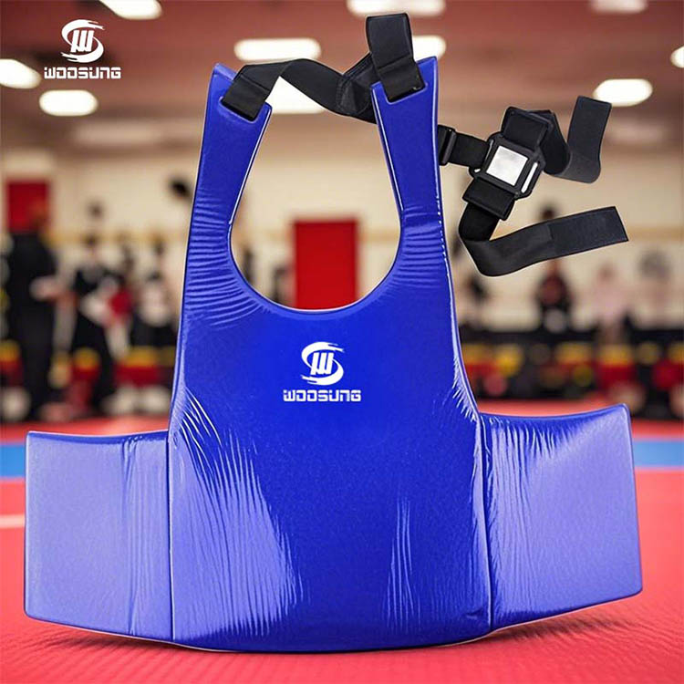 El protector de pecho de Taekwondo sumergido es un protector de pecho de Taekwondo fabricado por WOOSUNG, un fabricante chino, mediante un proceso de inmersión tradicional. Diseñado tanto para entrenamiento como para competición, equilibra el rendimiento protector, la comodidad de uso y la durabilidad a largo plazo. Este protector de pecho utiliza tecnología de inmersión para mejorar la resistencia general y la resistencia al impacto del material, manteniendo un rendimiento estable incluso después de impactos repetidos y uso frecuente.