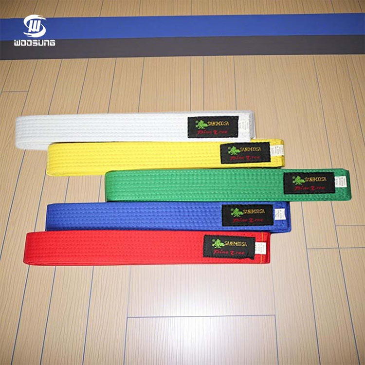 Los cinturones de un solo color de WOOSUNG Taekwondo utilizan algodón puro resistente y duradero o telas mezcladas, como un "guardián personal", elaborado a través de múltiples procesos de tejido: