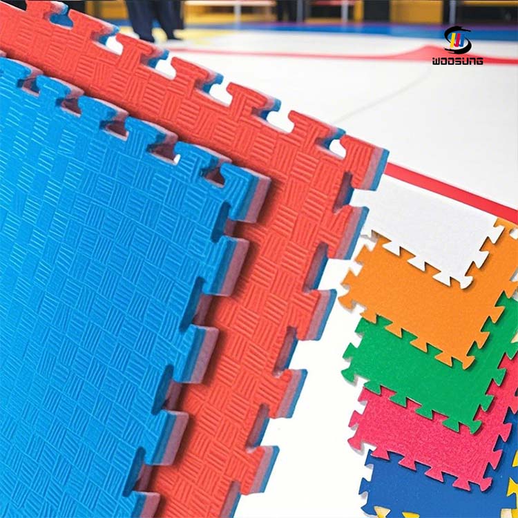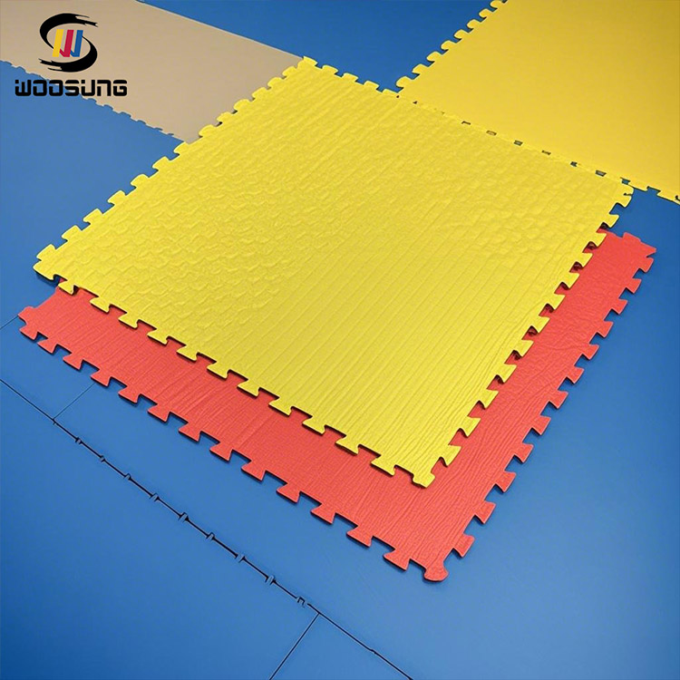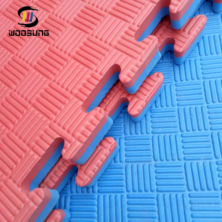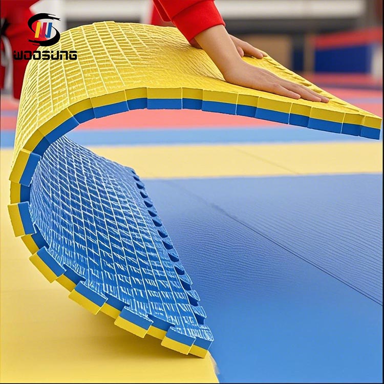WOOSUNG®Los tatami taekwondo están fabricados con espumas seleccionadas de alta densidad para garantizar su excelente durabilidad, amortiguación y elasticidad. El exclusivo diseño de estructura de celdas cerradas no solo garantiza que los tapetes tengan un rendimiento estable en un uso prolongado, sino que también tienen funciones impermeables y antibacterianas, lo que los hace particularmente adecuados para su uso en lugares de entrenamiento públicos. Las alfombrillas tienen una superficie lisa y un agarre fuerte, lo que proporciona un soporte estable para movimientos de alta intensidad como patadas y saltos, lo que reduce en gran medida el riesgo de resbalones.